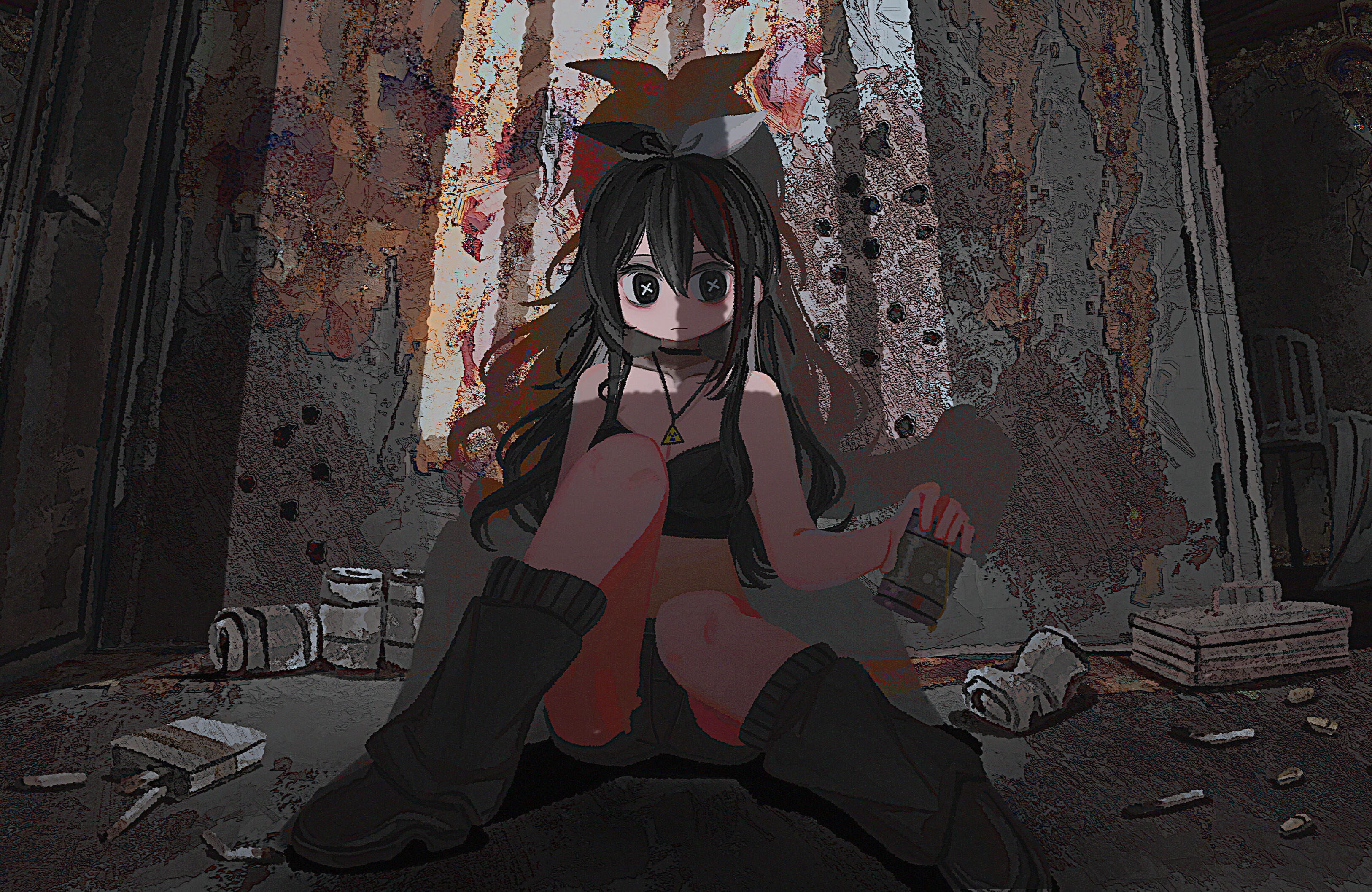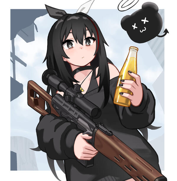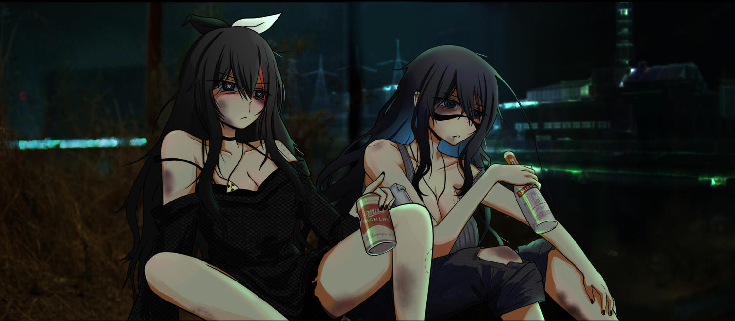 Hempie is a sleeper agent that went against the orders given to her by her superiors. As a result she was banished to the city of Chernobyl. She is specifically trapped within the radioactive exclusion zone and is forbidden from ever leaving the area. Given the state of her surroundings, she came into contact with so much ionized radiation that she herself is now radioactive. Hempie puts off about 100,000 microsieverts per hour, making her impossible to get close to or else whoever is within her presence will suffer terrible radiation poisoning; most often times leading to death.She spends her days studying the architecture in the area, as well as the old abandoned military equipment (armored vehicles such as BRDM-2, BTR-60 personnel carriers, T-18 tanks, Mi-8 helicopters and other machinery). Hempie also has a fascination with the weapons left at her disposal, such as the SVT38 (semi-automatic rifle), AVS36 (fully automatic rifle), SVD (sniper rifle), and the DP-27 (lmg). She's spent a lot of time deconstructing/reconstructing these weapons and knows how to use them. She also drinks a lot of alcohol- primarily beer, more specifically, Miller High Life.She has a sidekick (mascot) named Pyp. He's merely a little blob creature that has developed a tail and ears as a defect from the radiation. He has no arms or legs and the radioactive waves surrounding him keep his halo afloat. The halo is significant because it indicates his role in being a savior for Hempie and her loneliness. They're always together and he can often be found sitting atop Hempie's head or on her shoulder when they're traveling together. Pyp doesn't speak, but due to his viscoelastic form he is able to express himself through his movements.